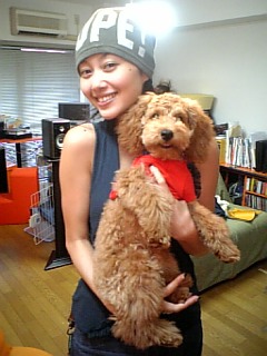 今日は朝からジムだよー。汗を流して水をたっぷり!写真は昨日の遠藤さんスタジオで犬のファロと(^0^)/