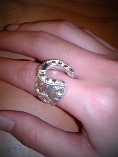 なみはモカシンが好きで、自分でオーダーした物を履いてるんだけど、大阪のそのお店にたまたま寄ったら何と出会ってしまいました!この指輪に!全部手掘りで上の部分は馬の蹄鉄になってるの!可愛いでしょう(^O^)今日はパワパフの取材とアフレコだったよ。帰りに秋谷ちゃんとまきこちゃんとランチしたよー。