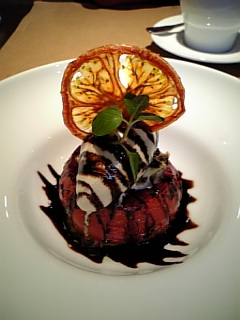 今日はブランチで青山にあるトマトレストランに行ったよ。いろんな種類のトマトがあって、何とデザートも全てトマトを使ってるの。これはトマトのアイスクリーム。オーブンで一度焼いたトマトに砂糖を塗してそれを冷やした物の上にバニラアイスクリームとチョコレートをかけてるの。1番上はトマトの薄切りをまたコーティングしてるんだよ。聞くとうぇ(>_<)っておもうでしょ?でもこれが不思議な事に全然可笑しくないの。とっても美味しいんだよー。