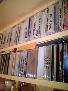 家にCDがいっぱい。入りきらないから薄いシートに入れ換えてる。まだまだここに入ってないCDがいっぱいだよ。いくらスペースがあっても足りないよー。