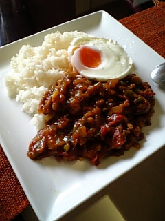 ここの所ずっと昼夜は外食。今日は朝10時から溶岩Yogaに行きました。もう少ししたら出掛けるのでその前に家でご飯。料理はストレス解消にもなるし良いね。残り物でなんちゃってカレーを作ったよ。玉葱とピーマンとベーコンとトマトをオリーブオイルで炒めてからコンソメを入れる。そこにカレー粉を少し入れるだけ。卵はチンして50秒位かなo(^-^)oおさらにもってレモンをたっぷりかける。それだけ!美味しかったよー。最近私オデブちんです。。。ハァー。。。痩せたいー。。。