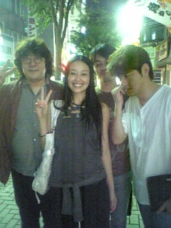 帰り際に何人かをパチリ。麻理子にK.、安田岳弘くんに狂言師の善竹富太郎くんにラジオパーソナリティーの西任あきこちゃん。あこは月曜日から木曜日まで東京FMで毎日ラジオ番組やってるよー。かなりいろんなジャンルの人がいておもしろい。ってさ、ソロの曲やばい。。。