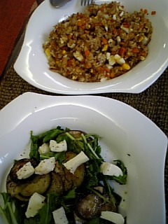 写真はある昼に作ったカレーピラフとルッコラ&やきなす&カマンベールチーズのさっぱりサラダ。