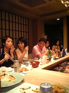 打ち上げは某料亭で。麻理も芳雄ちゃんもただいまミュージカル真っ最中。昨日も一公演終えてからチャリティーをやったよ。麻理は相当頑張ってるよー。みに行ってあげてね。それにしてもご飯が凄かった!あわびや蟹、ちらし寿司や煮物、湯葉にローストビーフに数え切れないほどの種類を食べました。そして美味しいお酒を頂きました(^?^)