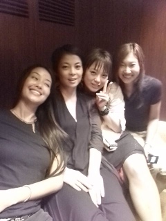 暗いけど、ライブ終わりに全員で。右からSHIAN、はんざわさん、あやちゃん、香りちゃんに私。みんな凄い良い声だよ。私はずーっとアコースティックしかやった事のないシンガーなので、慣れない事が沢山あるけど、何だかとても楽しくてみんな初対面なのに女子高か?ここは、って位べらべらしゃべってたよ。