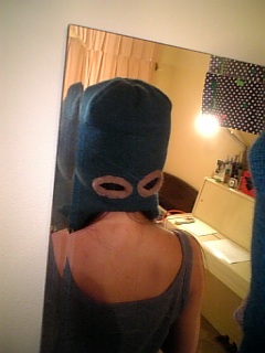 この前代官山を歩いていて買った冬用ニット帽。前はつばがついたあったかい感じ。でも後をみると。。。完全にマスクマンですε=(>ε<*)プッ