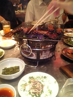 打ち上げは隣の焼肉屋さんへ。ガールズ三人はマッコリで乾杯。センマイ刺しとか、ホルモン系、ロースやカルビ、タンやナムル、ひたすら食べたよー。美味しかった!