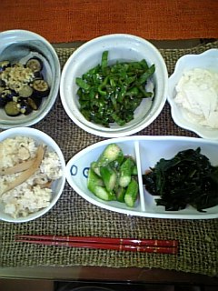 今から夜までスタジオなので、お昼ご飯はしっかり作って食べました。フワフワ豆腐とわかめの酢の物、きゅうりの胡麻和え、なすの生姜甘煮にピーマンのキンピラと松茸ご飯。かなりお腹いっぱい!スタバのラテも買っちゃったo(^-^)o