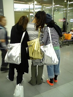 実は仙台から札幌に向かう飛行機の席に着く前に、持ってたお気に入りのJhon Galianoのスポーツバッグのとってのぶふんが綺麗に根本からブチッと切れて、どうにもこうにも困ったので、サウンドチェック後にあやちゃんと香りちゃんに付き合って貰ってPARCOへ。エレベーターから降りあ瞬間、待ってました!と言わんばかりに素敵なバッグがZUCCaに。そしてなんと香りちゃんとあやちゃん、そして香りちゃんマネージャー早川さんもお揃いでお買い上げ。そこにあるバッグが全て綺麗になくなりました。そして皆これを持って羽田に帰ってきたよ。昨日他の人達皆に好評で、半沢さんが『僕のはないの?欲しいなー。』って言ってたよ(^O^)