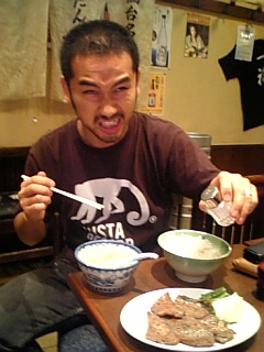 爪がハゲハゲです。。。汚い。。後でとろう。それにしても今の時期に着られるロンTが欲しいけど、お気に入りって全然見つからない。ちょっと可愛いなと思うと20000円位するし(゜_゜え?これコットンのロンTですよね?なぜ?みたいな。。(?_?)服の価値ってあってないような物だから、名前があるってやっぱり高くなるのかもね。それにしてもこの前デパートに行ったんだけど、洋服の高さにびっくり!パーカーが五万円とか普通にするし。パーカー五万円。。。(+_+)特に私がいつも安く買わせて貰ってるからかもしれないけどさ、靴とかバッグとかならそれ以上でも良いよ。でもパーカーはないよね。。あぁ、荷物が重くて肩が痛い(ノ_・。)そして写真は変顔フリーテンポマネージャーの高石さんeating牛タン。