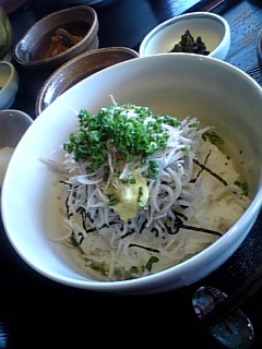 今日は用事があり、江の島の方まで足をのばしました。お昼は初めて入った定食やさんで。お腹が少し冷えてたので、生しらす丼ではなくかまあげしらす丼にしたよ。とっても美味しかった!