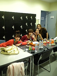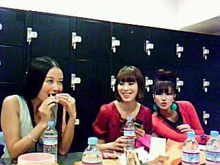 今日は朝起きてちゃんとご飯食べたよ。胃がちょっともたれてたので、おかゆ。あやちゃんと香りちゃんのマネージャーさんの早川さんと。皆ももたれぎみf^_^;又朝から喋りまくってたよー