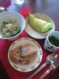 今日は7時に目が覚めたので、そのまま起床。そして朝ご飯。玉ねぎと小松菜の茹でておいた物とあみえびを乗せてオリーブオイルベースのドレッシング。いちぢくパンを軽くトーストして、昨日実家から頂いたメロン。そして何と言っても一番好きなペパーミントティー。ダージリンティーをフレッシュペパーミントをたっぷりそのまま入れたコップに注ぐだけ。これが一番贅沢な大好きな飲み方。そのままペパーミントも食べてしまうのですよ。幸せ〜。メロンもヤバい〜。美味い〜。