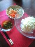 お昼は冷やしうどんと昨日作ったナムル4種盛りを食べたよ。ナムルはもやしと人参と大根とさやいんげんです。野菜って美味しいね。何でも食べられるように育ててくれた母に感謝です。