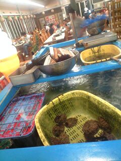 夜は地元の海の幸を食べに。こんな生け簀があったよ。