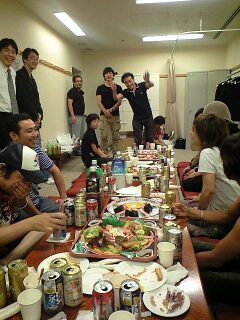 まずはスタッフさん達と軽くお疲れ様会。楽屋で色んなの持ち寄って乾杯。