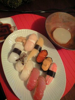 昨日の夜もこれ又母に買ってもらったお寿司と大根を柔らかく煮たので食べました。お寿司美味しかった!思わず食べ終わった後電話してしまいました。