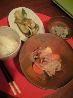 舌を火傷しました。今日のご飯は肉じゃがと青梗菜の紹興酒蒸しに辛味大根とじゃこのゆず和えです。ご飯も炊きたてでうまーい!土曜日はK-1だね。私は残念ながら行けないけど、バダちゃんに勝って欲しいー!どうなるのかドキドキですな。