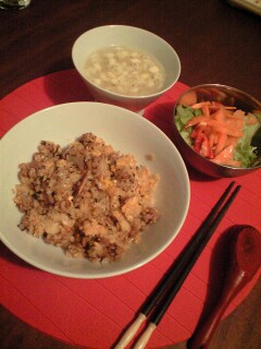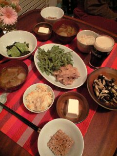 夜ご飯は冷蔵庫のお掃除を兼ねて、玉ねぎとベーコンのクリームパスタ半熟卵乗せにカレーポテトサラダ。ターメリックが只今体の中で燃えており、体がゾクッとしてた私には温めてくれて心地良い。