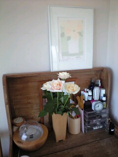 写真はトイレだけど失礼っ。棚の上には頂いたお花や、八ヶ岳でお正月拾った松ぼっくりにシナモンのアロマスティックが置いてあります。トイレは色々飾ってあって、凄く和む場所で思わず、ぼーっとしてる時があります(ノ_・。)あはっ。明日のアフレコも流そうだな。頑張ろ。