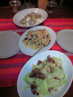 夜は気を取り直してあり合わせご飯作り。まずは砂肝とキャベツ炒め。冷凍していた鶏の砂肝を切って、ニンニクとごま油とお醤油で和えておく。フライパンでキャベツたっぷりで炒めて、最後にお醤油をまた人回し。