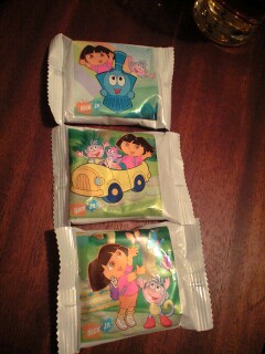 昨日DORAの収録に行ったら、発音指導のルミコ バーンズさをがアムステルダムでDORAの絵が書いてあるクッキーを皆に買って来てくれました。boots君も居ます。可愛い(=^▽^=)