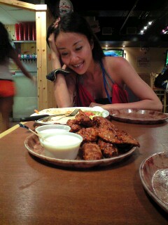 家に着いたのが12時過ぎ。アフレコはないのだけど、これからある大切な曲の仮歌。キーを決めたりする大切な作業です。スッゴく楽しかった!またグアムの事は書きます。女の子のユニフォームが可愛いお店Hooters。