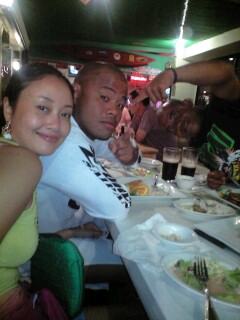 写真で反対側にいるのはグアムでほとんどのローカルが着ている、ファッカイと言うサーフブランドのオーナーのRoman。ハワイにも日本にもショップがあるよ。とてもかっこいいよo(^-^)o私もタンクトップを何枚か買いました。毎日Romanのパドルボードを借りて海に行ったよ。そして私の隣にいるのはアイランドでもとても有名なファイター、ZuzuことPatric Azuzu。とても優しくて面白い。